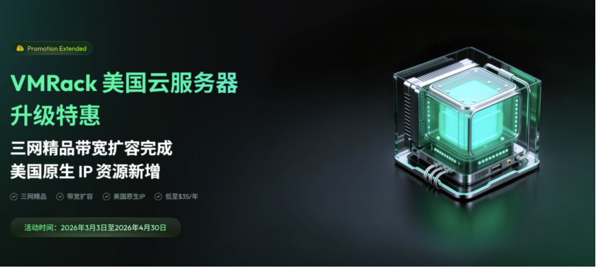 当前春季促销活动因三网精品线路带宽完成扩容而同步延长,活动周期为 2026 年 3 月 3 日至 2026 年 4 月 30 日,活动套餐覆盖三网精品、三网优化、美国原生三条线路,三网精品云服务器(CN2 GIA/AS9929/CMIN2)低至 $35/年起。此外官网常规套餐可限时享受 8 折优惠;新购美国原生/三网优化套餐并加入官方群提请工单,可申请连续 3 个月 100% 额外流量。活动套餐数量有限,售完即恢复标准定价。