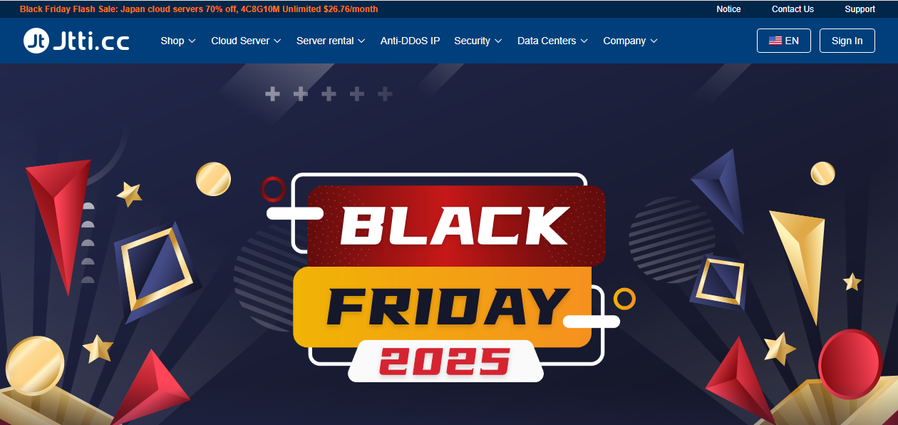 Jtti.cc 发来了 2025 年黑五活动,针对日本机房促销,日本云服务器立减 80%,精简版 1C1G5M 年付$27.7,低至$2.3/月,专业版 4C8G10M 低至$26.76/月,线路为大陆直连优化带宽,不限制流量,IP 纯净度高,开放 25 端口,大陆访问延迟低至 50ms,稳定性很高,官方提供相关测试 IP 地址,有需要的可以提前测试。