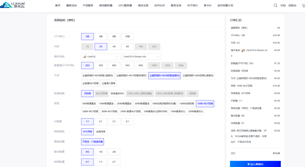 美国高防 VPS 有哪些?美国高防云服务器多少钱?近期我们拿到了一台莱卡云(Lcayun)的美国高防云服务器,可选 50G-200G 的 CERA 高防清洗线路,可选 AS4837/AS9929 的优化回程线路。非常适合对大陆访问有需求,又需要高防御的机器的朋友,接下来让我们来测试一下这款机器性能跟网络方面如何。