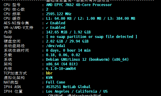 此次测评机器配置是 2C2G 50Mbps 的配置